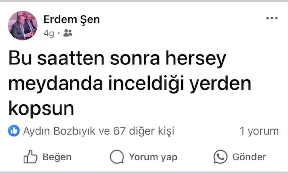 E.Ş., sosyal medya hesabından "Bundan sonra her şey meydanda, inceldiği yerden kopsun" şeklinde paylaşım yaptığı ve bu paylaşımı bir süre sonra sildiği öğrenildi.
