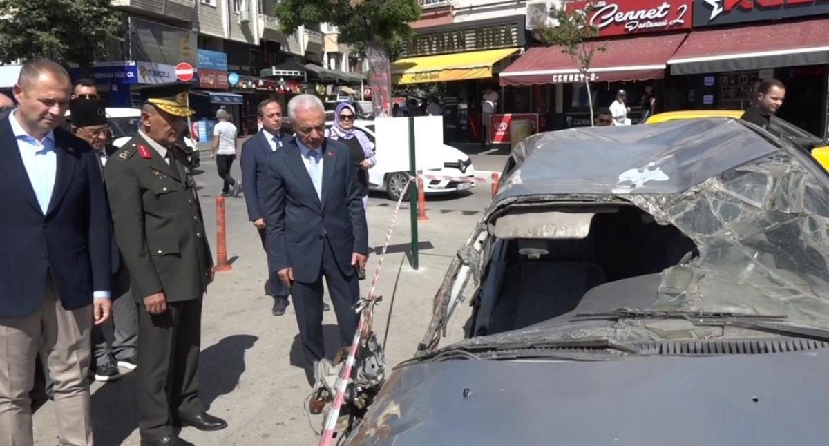 Özgürlük ve Demokrasi Meydanı’nda sergilenen otomobili, Vali Uğur Turan ve beraberindekiler inceledi.