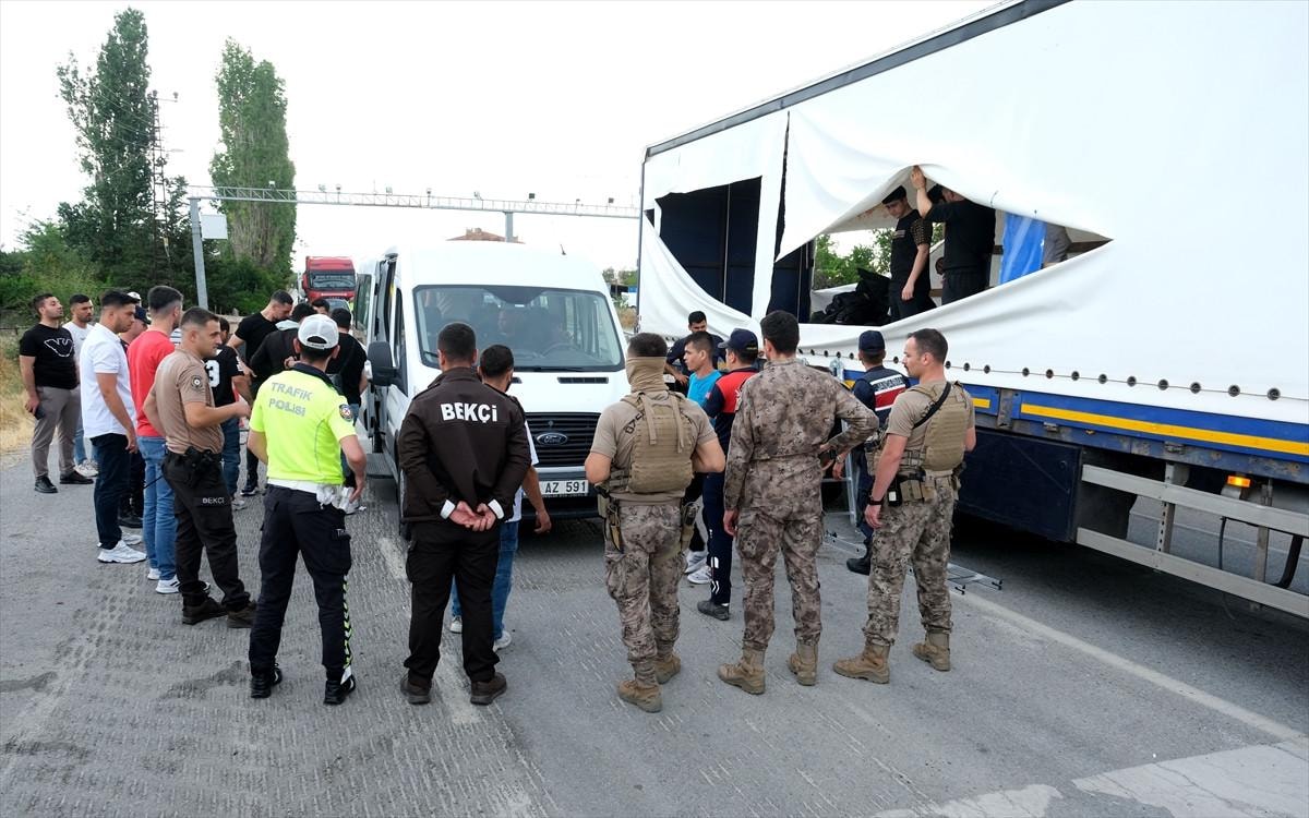 Bu sırada tırın dorsesindeki brandayı yırtan göçmenlerden 7'si yola atladı.