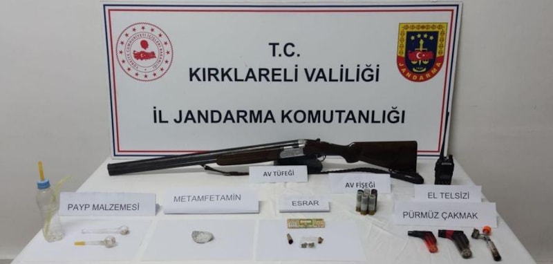 Ormanlık alanda yakalanan ve sürücülüğünü F.K. isimli şahsın yaptığı araçta 7 kaçak göçmen, 1 gram metamfetamin, 1 gram kubar esrar, 3 adet payp, 3 pürmüz çakmak, 1 uyuşturucu sarma kağıdı, 1 ruhsatsız av tüfeği, 8 av fişeği ve 1 telsiz ele geçirildi.