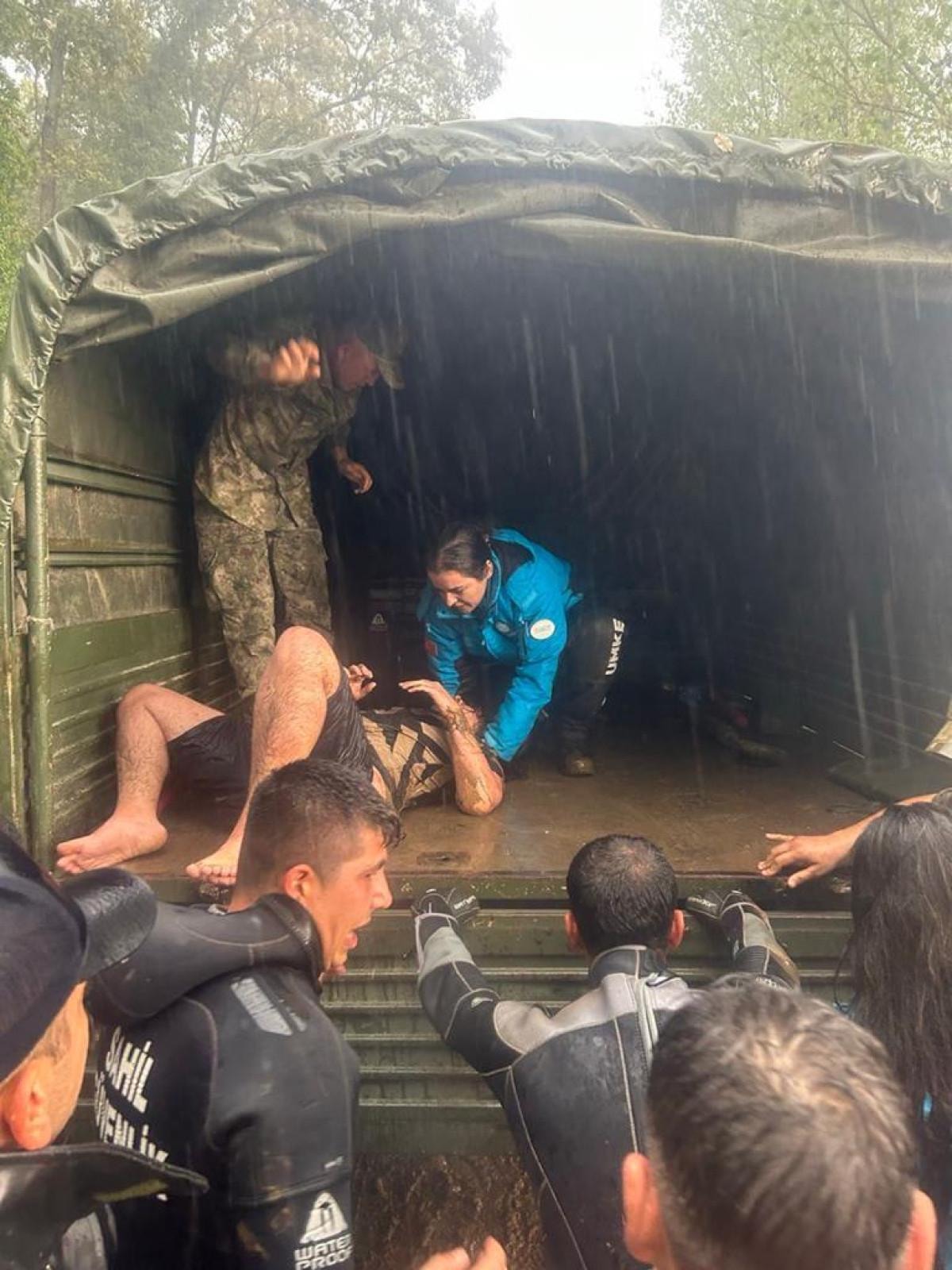 Yaralı olarak kurtarılan vatandaşlarımız sağlık ekiplerinin gözetiminde askerî personelimiz tarafından tahliye edildi.