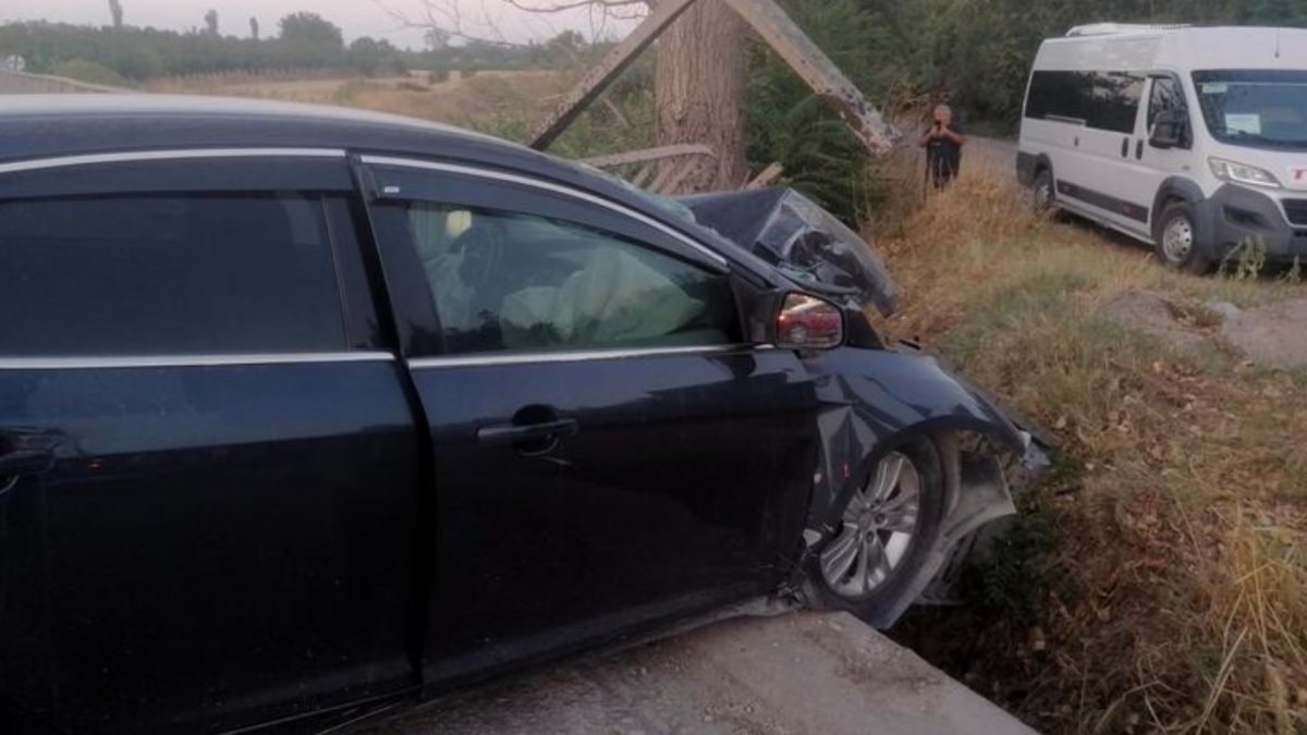 Kontrolden çıkan otomobil, köprünün demir korkuluklarına çarptı.