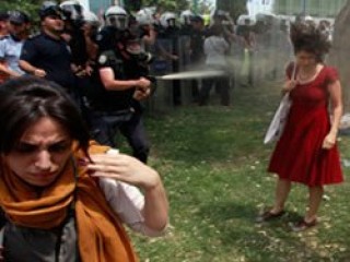 Kırmızı elbisesi ile biber gazı sıkan polisin hemen karşısında duran kadın Taksim protestolarının sembolü olmuştu.