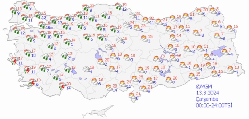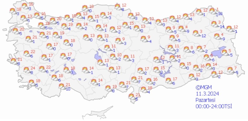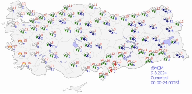 Meteoroloji Genel Müdürlüğü ise 5 günlük hava durumu raporu yayınladı.