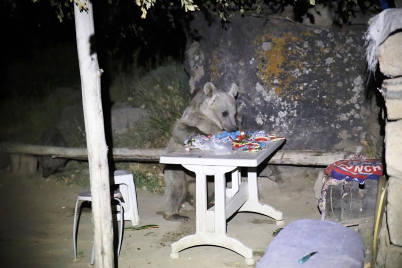 Bütün tatlılar, yemeklerini ve pastalarını ortada bıraktılar. Bölgede bu tür saldırılarla çok sık karşılaşıyoruz. Burası vahşi yaşam alanı. Burada insanlarla vahşi hayvanlar sık sık karşı karşıya gelebilmektedir. Bu da tehlikeli bir durum oluşturmaktadır. Yine farklı bir grup genç bu bölgede yoğun bir ayı popülasyonu ile karşılaştı. Yemek kokusuna geldiler. Bizler zaten buralarda piknik yapılmasını önermiyoruz. Tehlikeli bir ortam. Burada ayılar, kurtlar bulunabilmektedir. Vatandaşlarımızın biraz daha dikkatli olmaları gerekiyor.