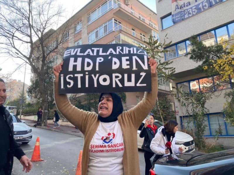 Kızının 2011 yılında HEDEP Van İl Örgütü tarafından, terör örgütü PKK kamplarına kaçırıldığını iddia eden Nazlı Sancar, HDP Genel Merkezi önünde isyan etti.