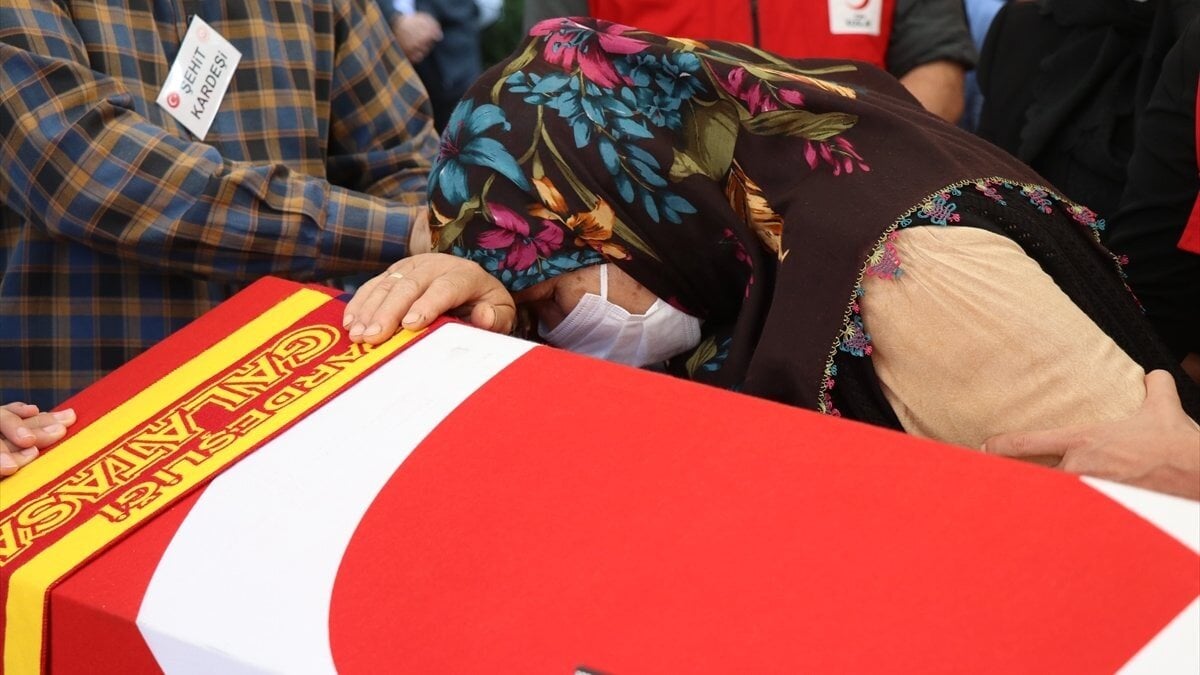 Kızılay şehidi, Merkez Büyük Cami'de kılınan cenaze namazının ardından gözyaşları arasında toprağa verilirken, tabutunda tutkusu olduğu Galatasaray ve Düzcespor atkısı da yer aldı.
