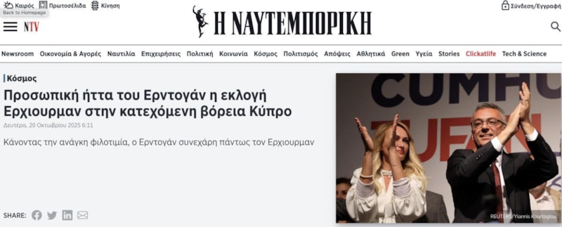 Ülkenin önde gelen finans gazetesi Naftemporiki ise "Erhürman'ın işgal altındaki Kuzey Kıbrıs'ta seçilmesi Erdoğan için kişisel bir yenilgidir." ifadelerine yer verdi.