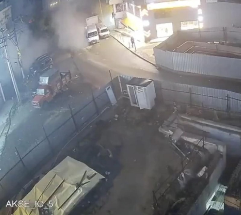 Görüntülerde binanın büyük bir gürültüyle yıkıldığı ve hemen ardından etrafı yoğun bir toz bulutunun kapladığı görülüyor.