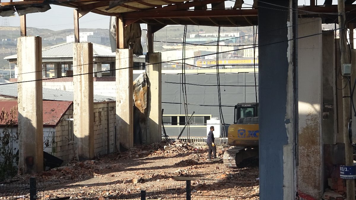 Yanan fabrikada yapılan incelemelerin tamamlanması ile 12 günün ardından Dilovası Belediyesi ekipleri, yapının yıkım çalışmasını başlattı.