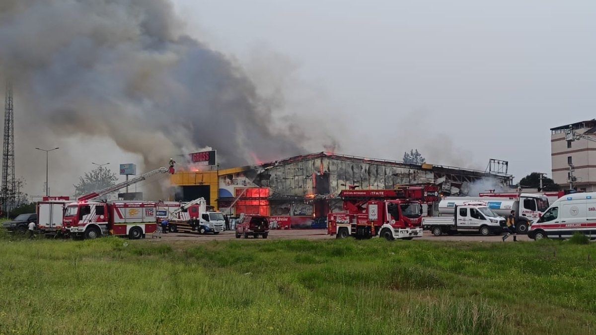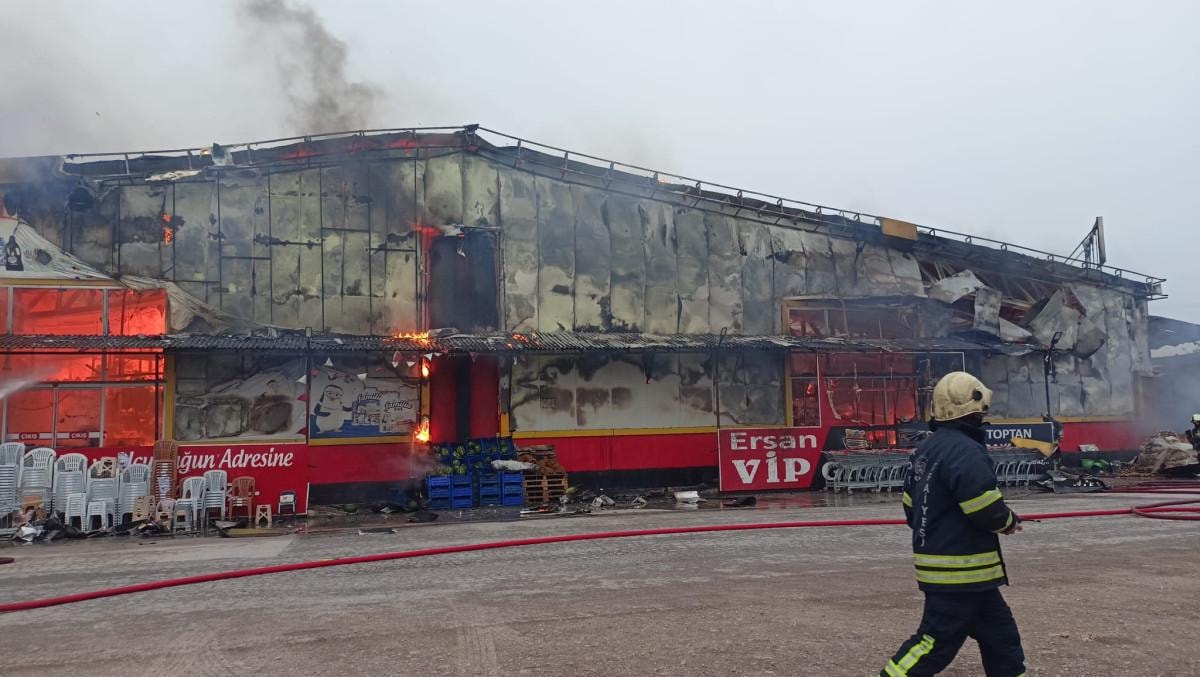 Çıkan yangında alevler kısa sürede büyürken, marketten yükselen dumanlar kentin her tarafından görüldü.