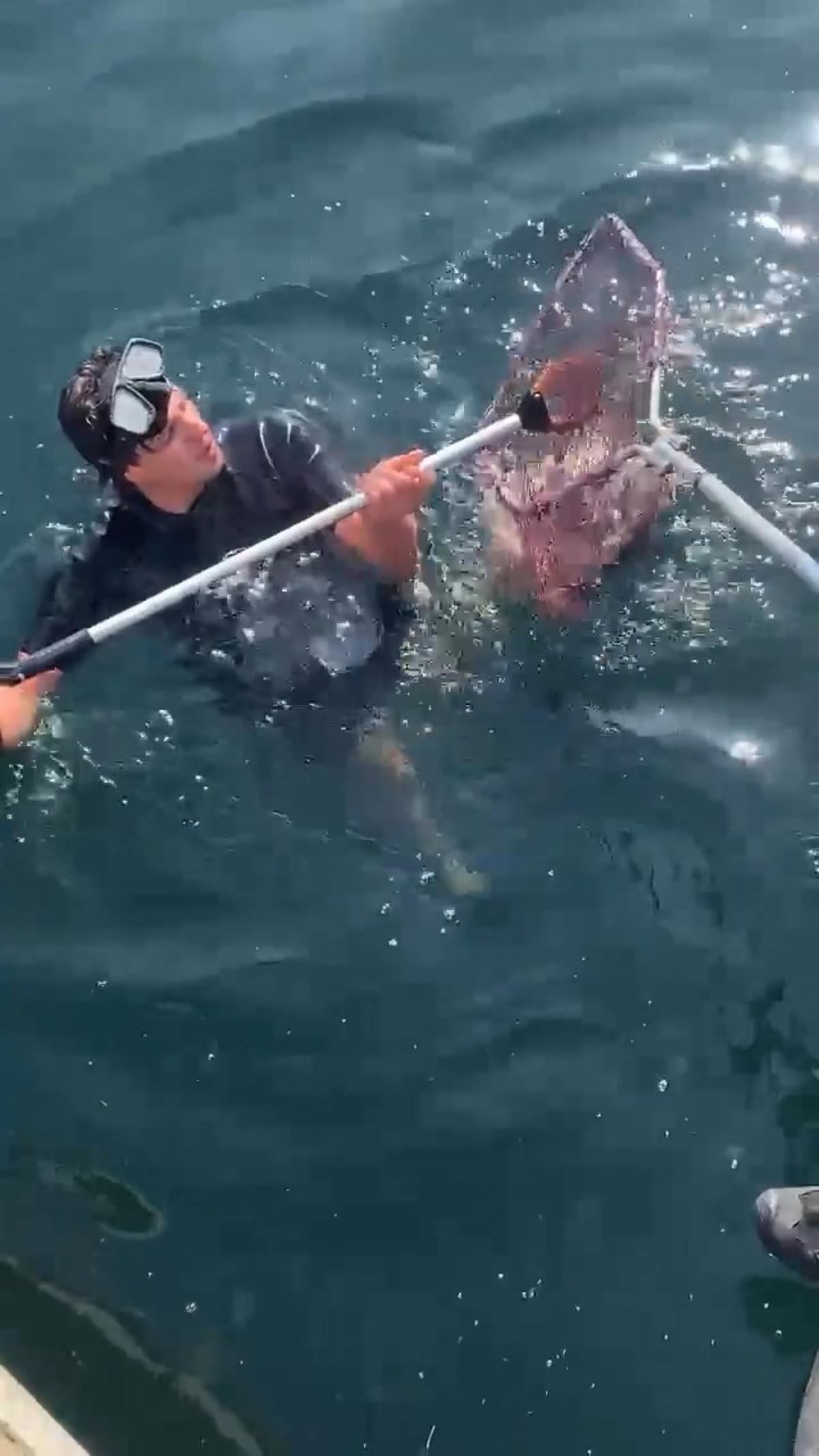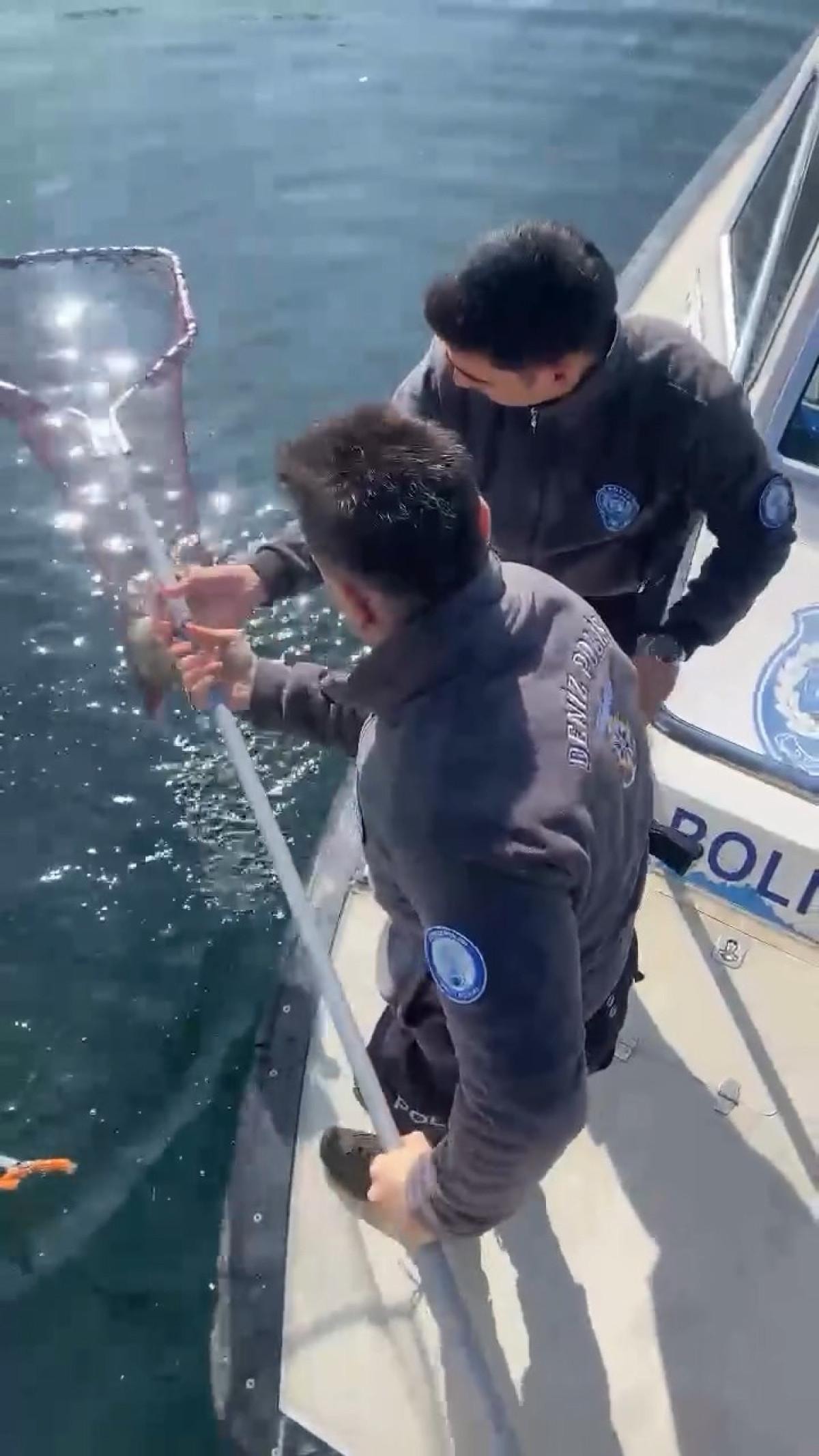Kocaeli Büyükşehir Belediyesi İtfaiye Daire Başkanlığı’na bağlı su altı ve su üstü arama kurtarma ekipleri ile deniz polisi, kediyi sudan başarıyla çıkardı.