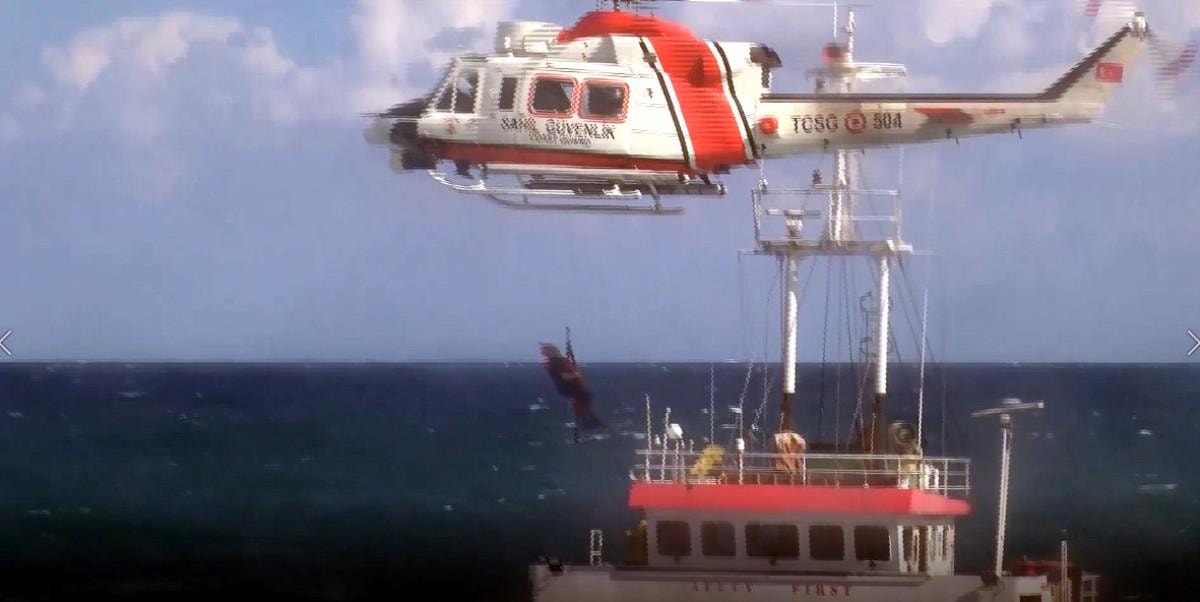 - Gemi mürettebatı, kötü hava koşulları nedeniyle helikopterle kurtarıldı.
