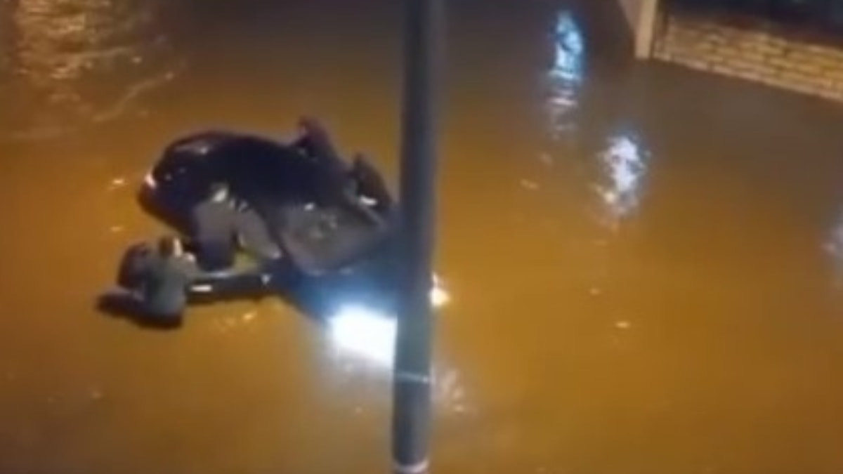 Sağanak nedeniyle yollar göle dönerken, suya gömülen bir aracı vatandaşlar kurtardı.