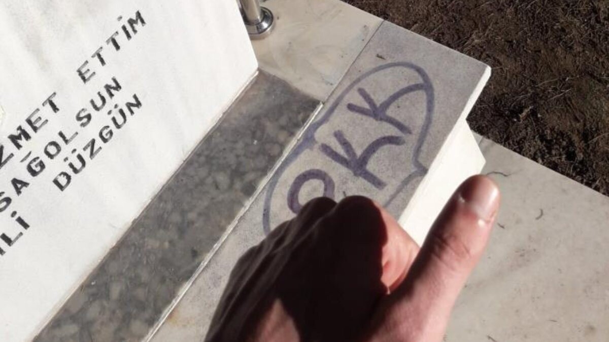 Şehidin mezar taşına PKK yazan kimliği belirsiz bir kişi, kabristanın fotoğrafını çekerek sosyal medya hesabından paylaştı.