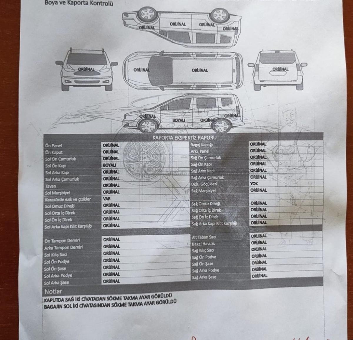 Aracı aldığı gün ekspertize giden Ülgen, tekrardan boya işlemleri ve sök-tak işlemlerinin yapıldığını öğrenince şaşkına döndü. Ülgen, olaya ilişkin avukatı aracılığı ile şikayette bulunurken, maddi manevi zarara uğradığını söyledi.