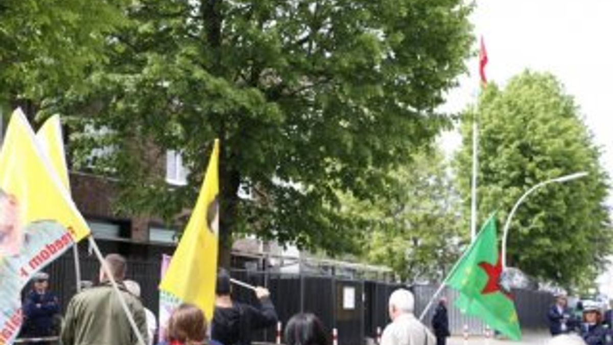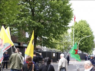 Köln'de yaşayan HDP'liler, Türkiye Konsolosluğu önünde toplanarak, Abdullah Öcalan'ın posterleri, HBDH, TJK-E, AGİF ve PYD bayrakları taşıdı. Miting “Direne direne kazanacağız”, “Biji Serok Apo” sloganıyla son buldu.