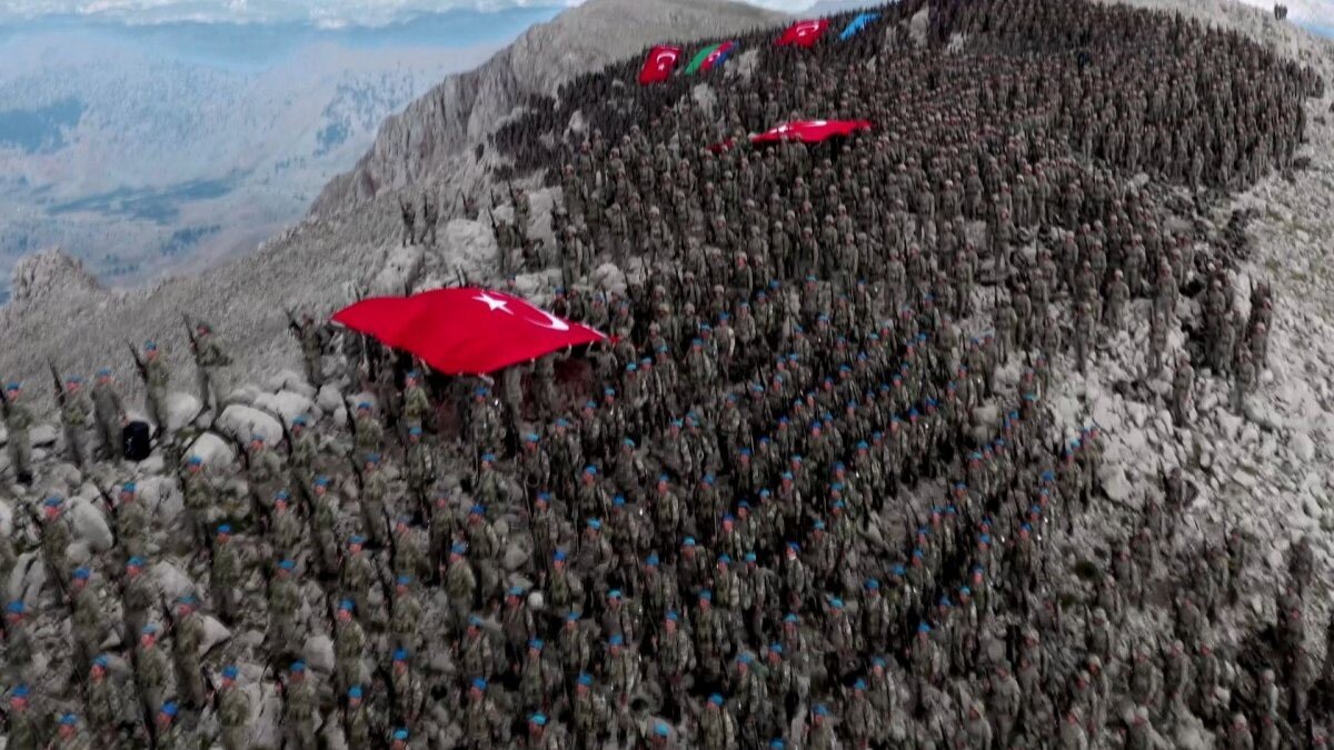 Türk askeri "Komando Marşı" eşliğinde Davraz Dağı'na tırmanış gerçekleştirerek, şehitleri andı.