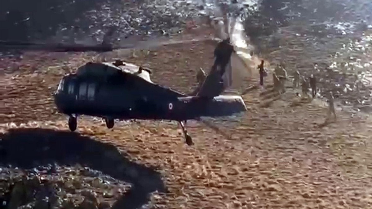 Helikopter desteğiyle çok sayıda komandonun katıldığı operasyonda arazi didik didik aranıyor.