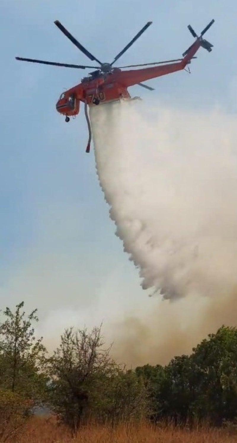 Yetkililerden alınan bilgilere göre; yangın ekinleri ve ağaçları yakıyor ve hiçbir yerleşim bölgesini tehdit etmezken itfaiye ekipleri, 10 araç, 2 uçak, 1 helikopter ve 34 itfaiye eri yangını söndürmek için çalıştığı, bölge çiftçisinin ise traktörleriyle yangınının ilerlememesi için söndürme çalışmalarına yardım ettiği bildirildi.