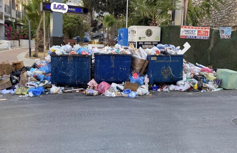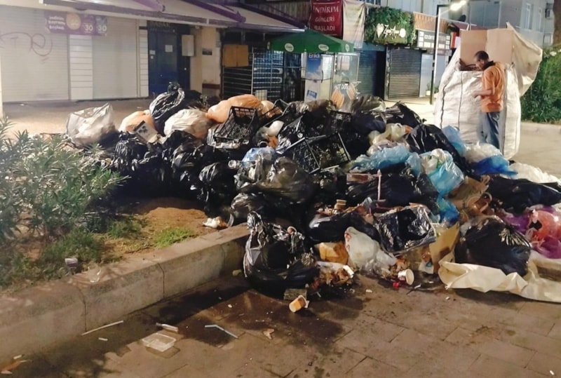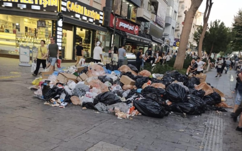 İzmir Konak'ta ise çöp dağları, sokaklardan taşmaya başlamış durumda...