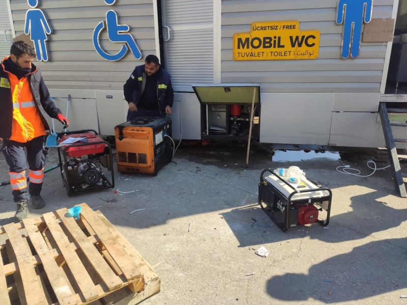 Öte yandan polisler, insani yardım gönüllüleri ve diğer kamu personelinin kullanımı için seyyar tuvalet kurulumları da tamamlandı.