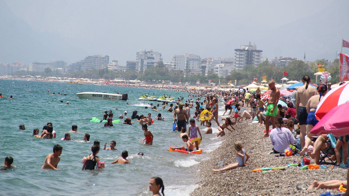 Sıcak havayı fırsat bilenler Konyaaltı sahiline akın etti.