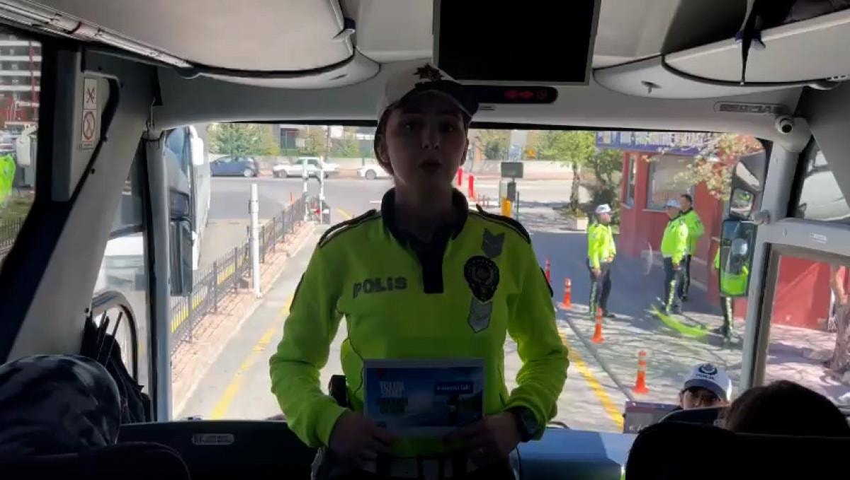 Konya Otogarı'nda yolculara bilgilendirici broşürler dağıtılırken, otobüsler de denetlendi. Sürücüler ve yolcular, trafik kuralları konusunda bilgilendirildi.