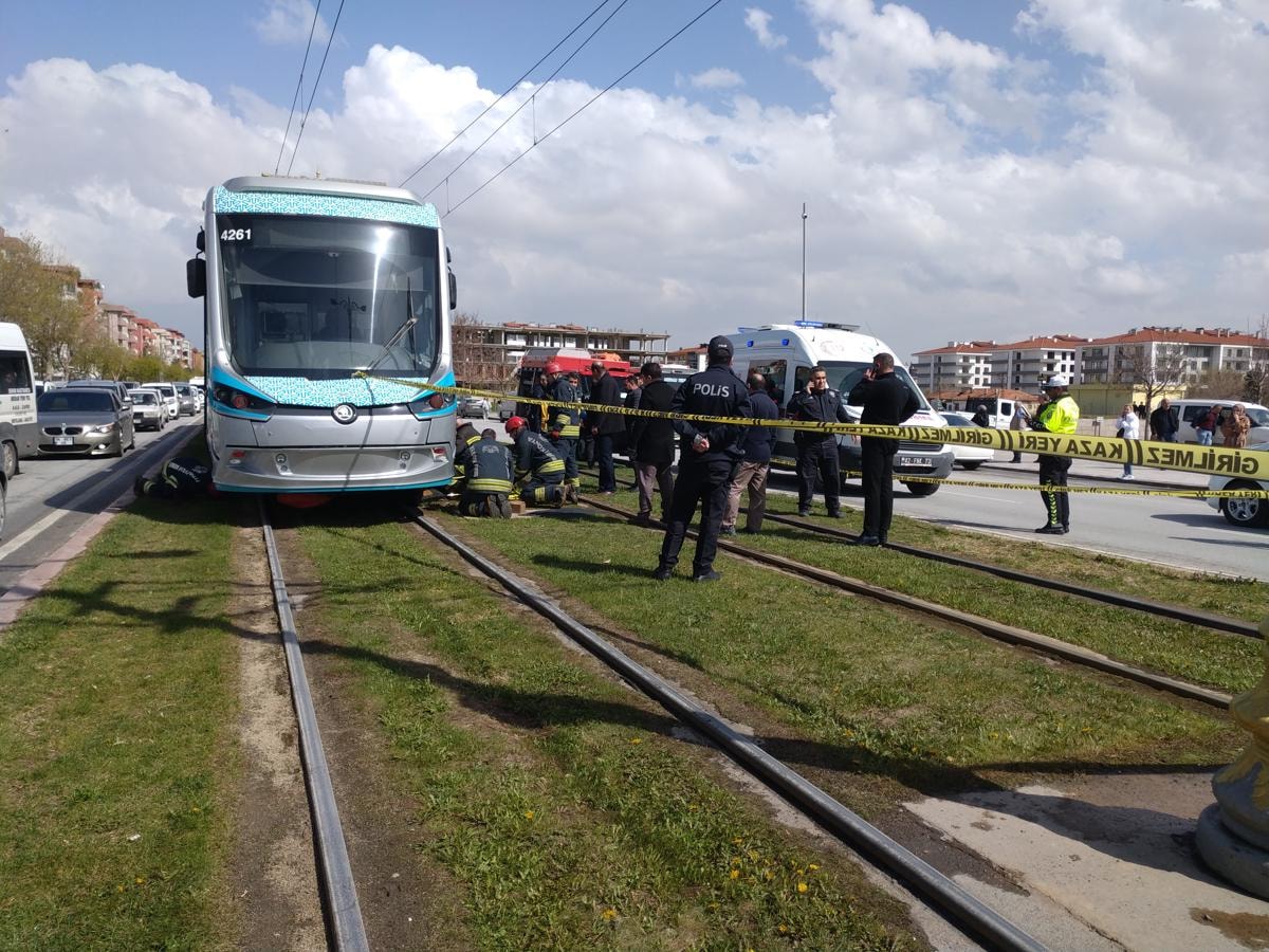 Olay yerine ulaşan itfaiye ekipleri, tramvay altında sıkışan İ.Ş.'yi kısa sürede kurtardı. Ağır yaralanan İ.Ş., ambulansla Konya Şehir Hastanesi'ne kaldırıldı.