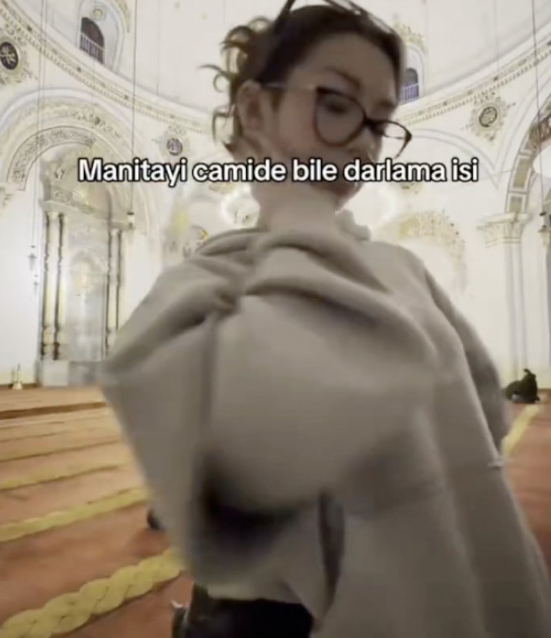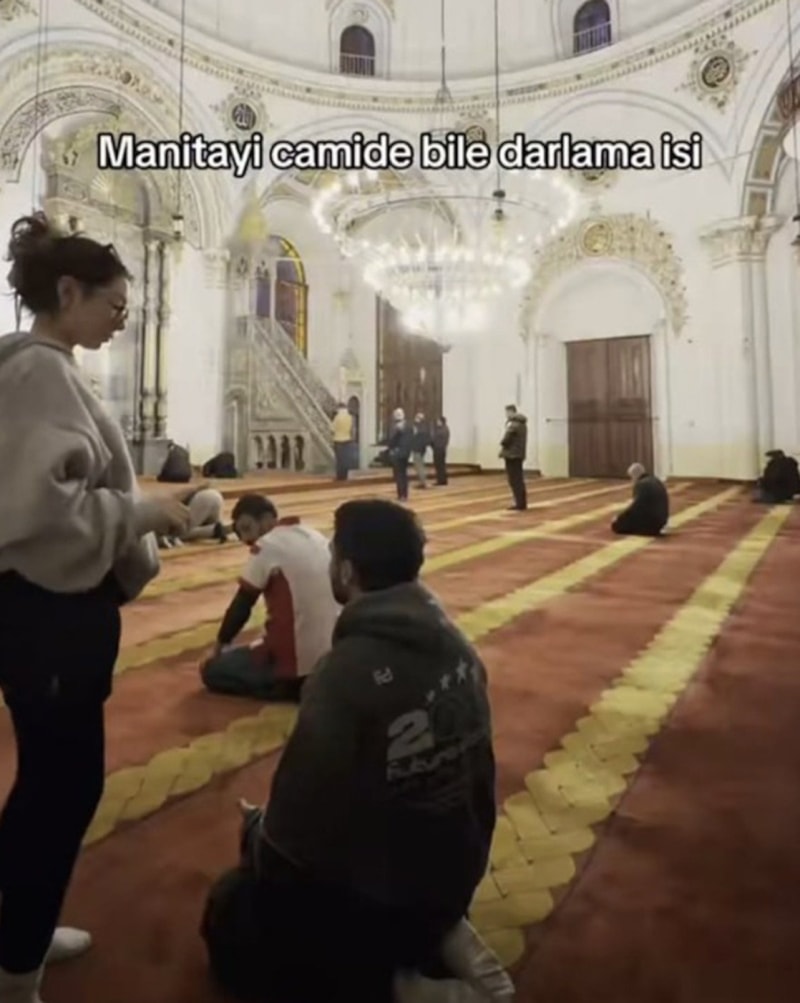 Genç kız paylaşımında, "Manitayı camide darlama işi" ifadelerine yer verdi.
