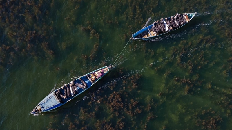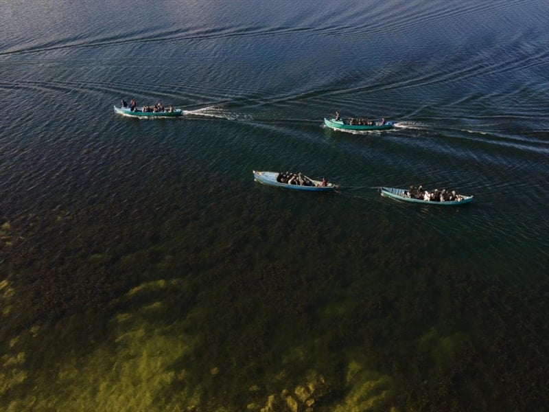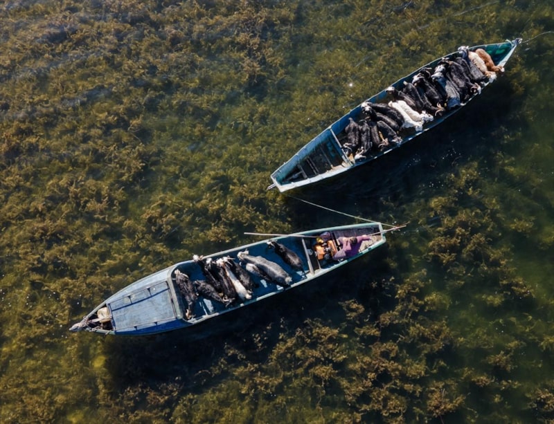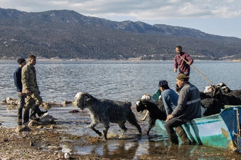 Sürülerini kış ayını vahşi hayvan tehdidi ve beslenme sorunu olmadan rahatça geçirebilmeleri için kimsenin yaşamadığı bir adaya götüren vatandaşlar, doğum sezonunun yaklaşması nedeniyle hayvanlarını balıkçı kayıklarıyla geri taşıdı.