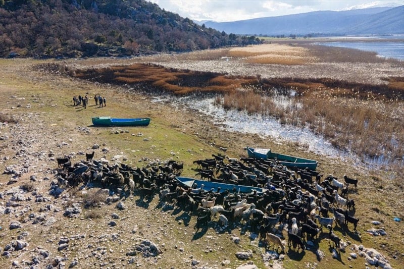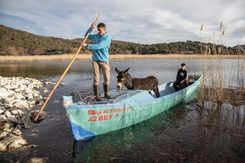 Beyşehir ilçesinde geçimini hayvancılıkla sağlayan bazı vatandaşlar, hayvan sürülerini ekim ayından itibaren Beyşehir Gölü'nde yer alan Hacı Akif Adas'na götürüyor.