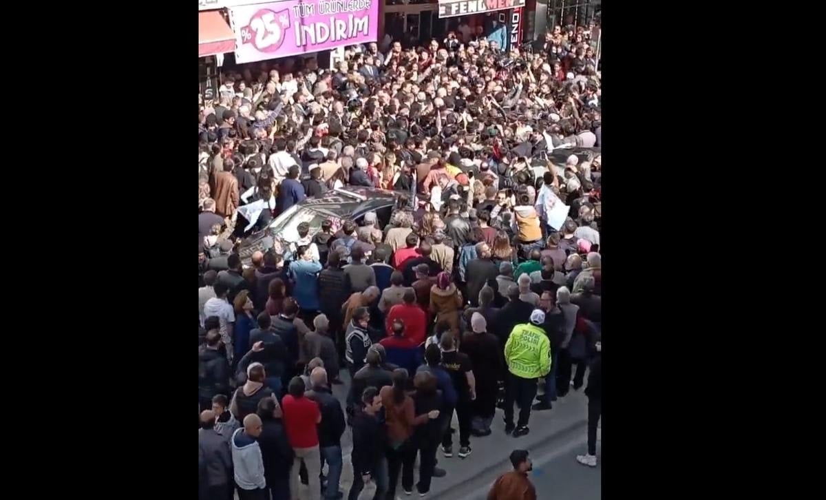 Yaşanılan izdiham nedeniyle Kılıçdaroğlu, esnaf ziyaretini aracından yapmak zorunda kaldı.
