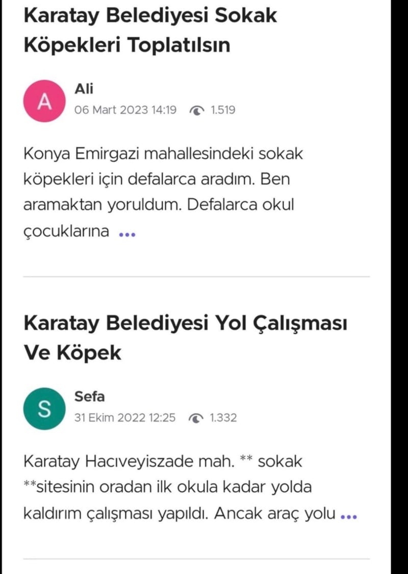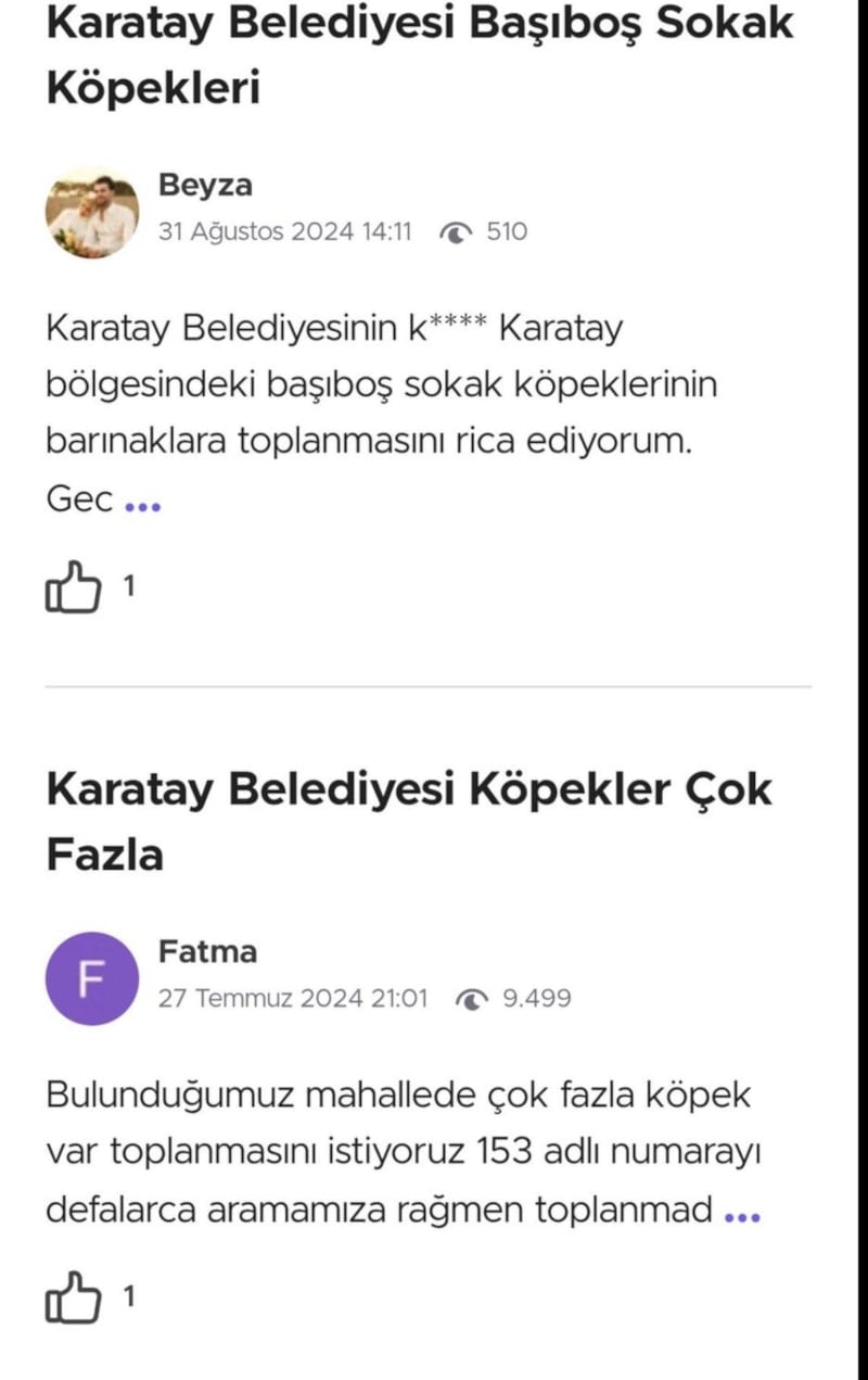 Birçok vatandaşın belediyeye yazdığı mesajlarda, fazlasıyla köpek olduğu ve bu köpeklerin toplatılmasını rica ettikleri görüldü.