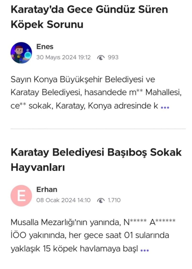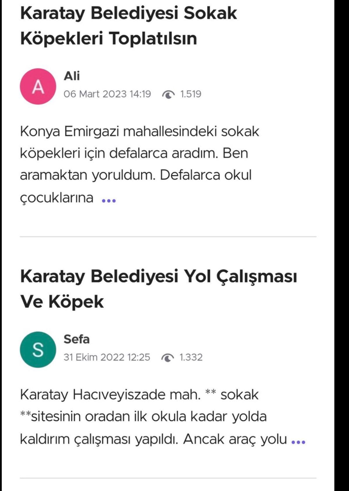 Karatay ilçesinde yaşayan vatandaşların, sık sık belediyeye ihbarda bulunduğu ortaya çıktı.