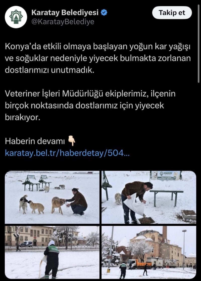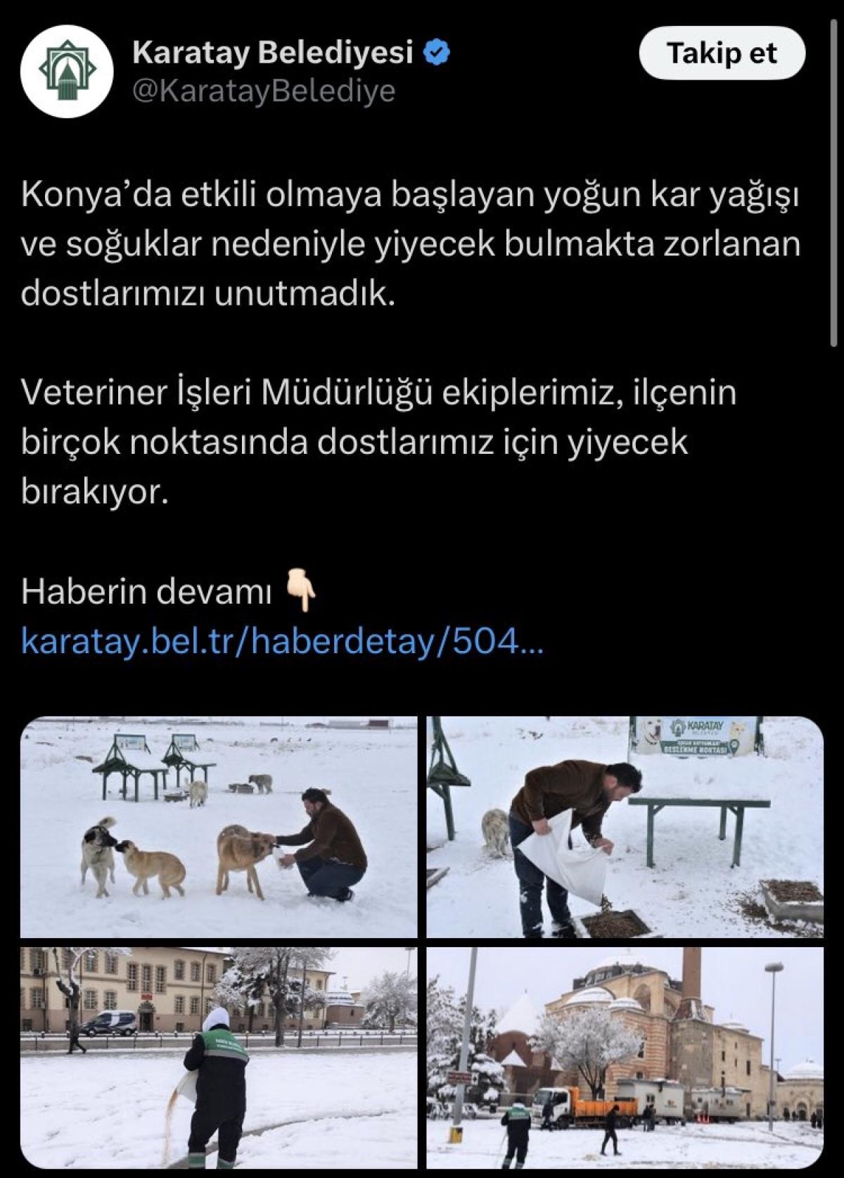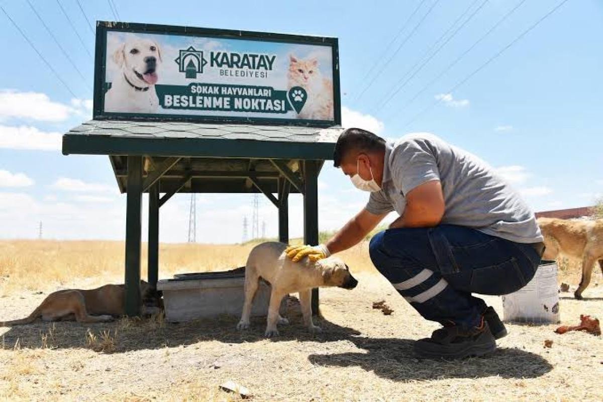 Karatay Belediyesi'nin sosyal medya hesabında, başıboş sokak köpeklerini besledikleri anlar ortaya çıktı.