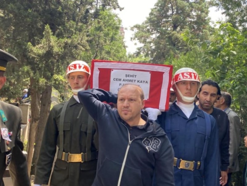 Kardeşinin tabutunu omzunda taşıyan ağabey Cemal Kaya ise, "Ağlamak yok. Düşmanları sevindirmeyelim. Vatan sağ olsun." diye konuştu.