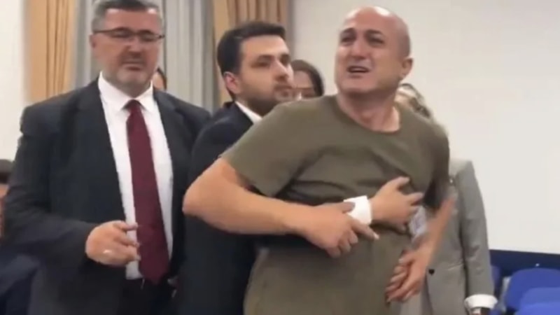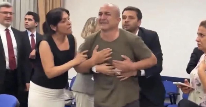 Acılı baba sinir krizi geçirirken muhalefet milletvekilleri "çocukları alet etmeyin" diye bağırdı, bazıları ise baba Halil Yılmaz'ın üstüne yürüdü.