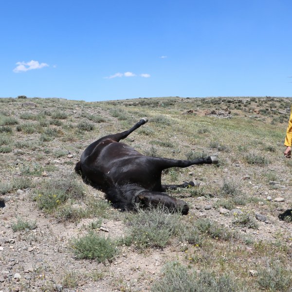 Karnında yavrusu da ölen atın öldüğü bölgeye giden muhtar Somkaya ve atın sahibi Onur Küçük, atı öldürenlerin bulunup cezalandırılmasını istedi.