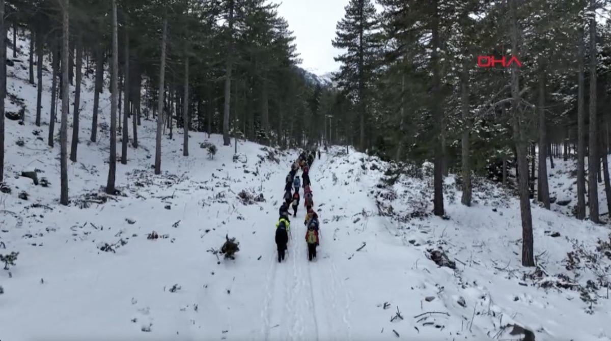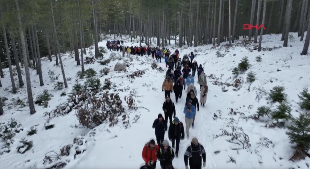 Yürüyüşü bir araya gelen 237 doğa sever, karla kaplı Anamas Dağı'na 'kar yürüyüşü' gerçekleştirdi.