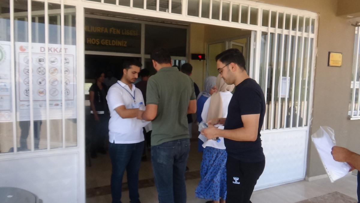 Şanlıurfa'da sınavın başlamasına az bir süre kala görevliler, anons yaparak adayları içeri girmeleri konusunda uyardı.