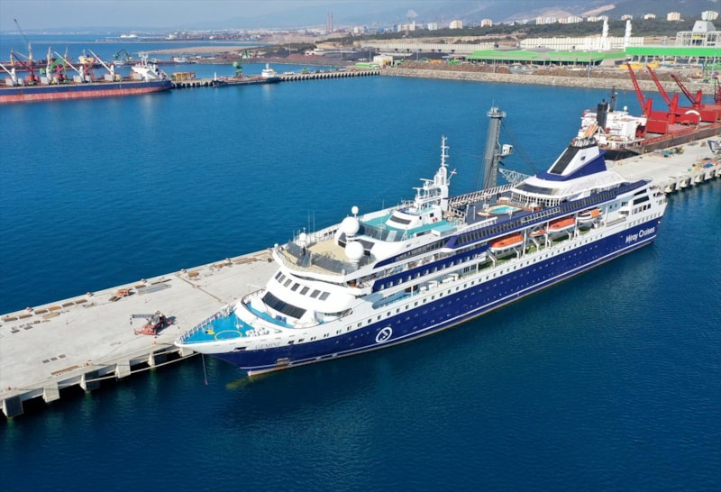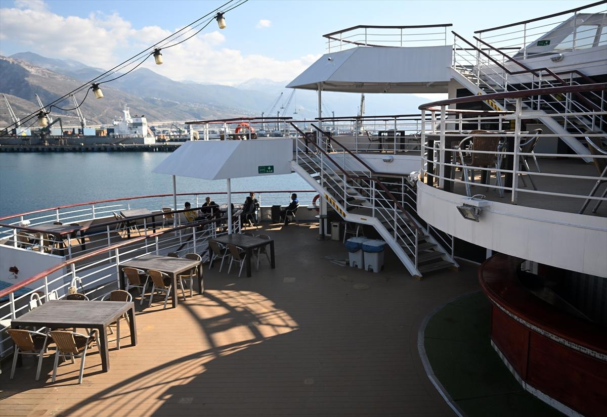 Bunlardan biri olan İskenderun'da depremzedelerin konaklaması için tahsis edilen 1.056 yatak kapasiteli kruvaziyer gemisi de İskenderun Körfezi'ndeki Tosyalı Limanı'na yanaştı.