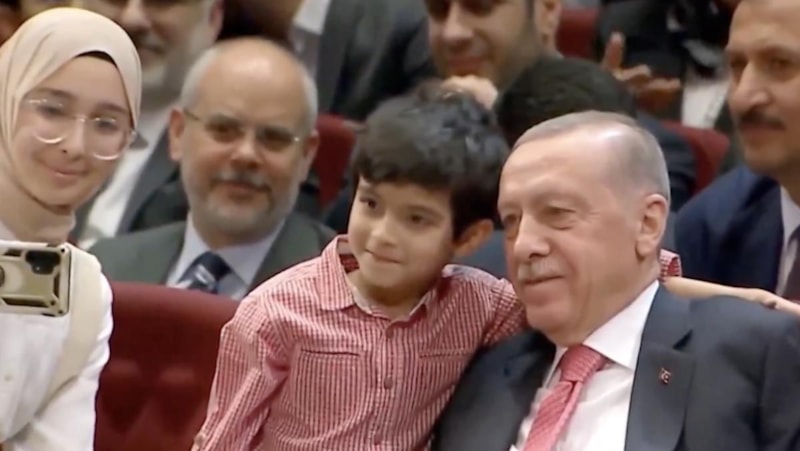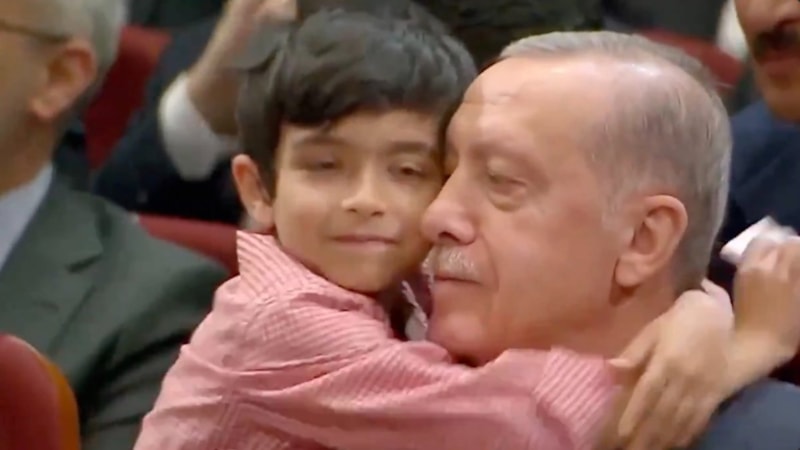 Çocuk daha sonra Erdoğan'a sımsıkı sarıldı ve bir süre bırakmadı.