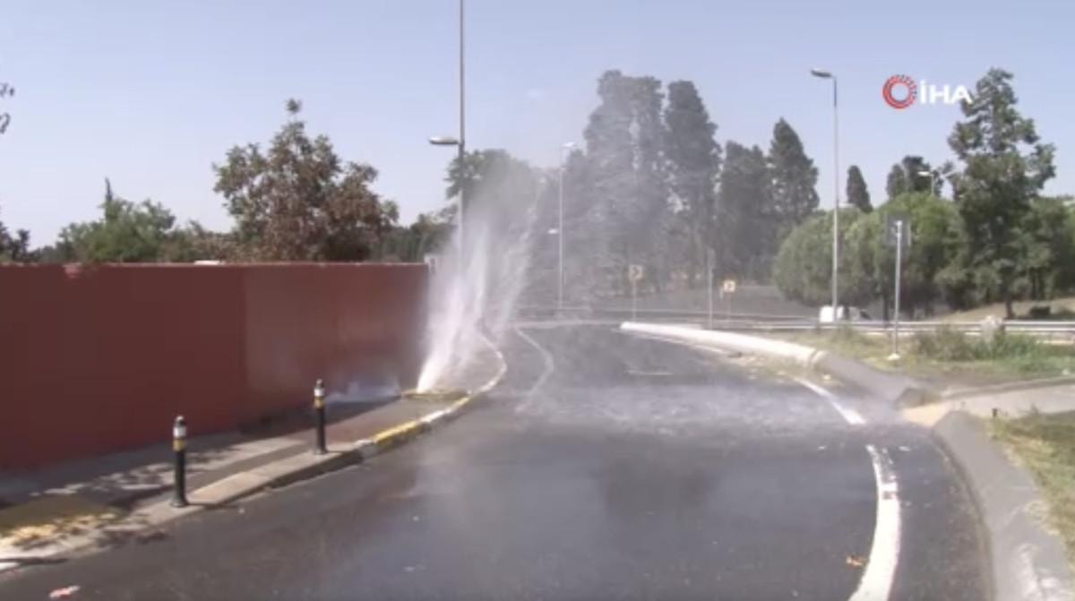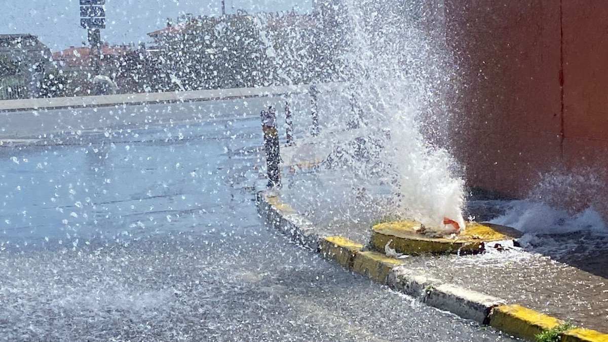 Patlama sonucu fışkıran su yaklaşık 3 metre yüksekliğe kadar çıktı.