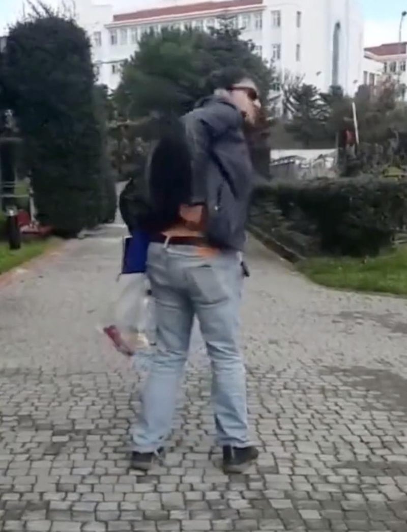 Kedileri tekmeleyerek tepki çeken Aytuğ K.'nin, bu konuda kendisini uyaran bir kadın komşusuna cinsel organını işaret ettiği anlar ortaya çıktı.
