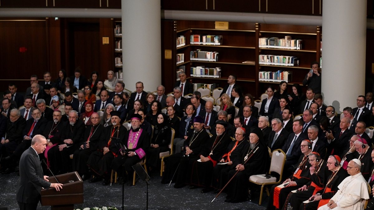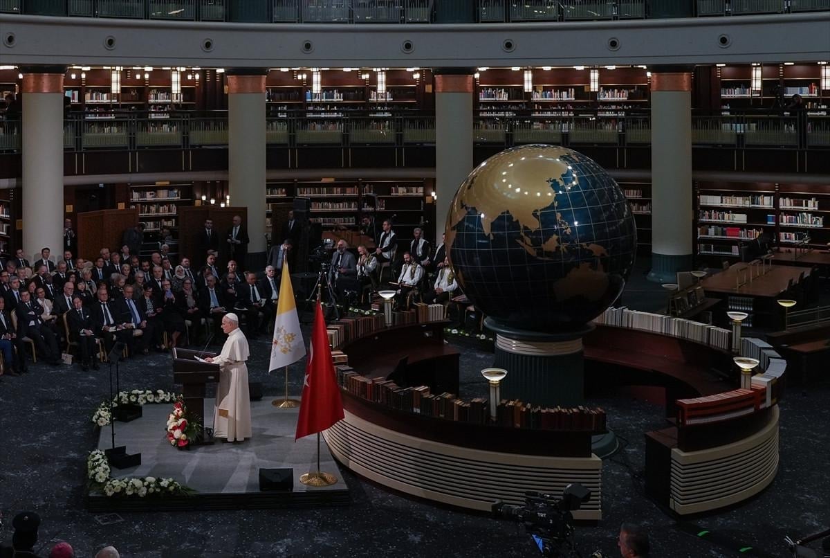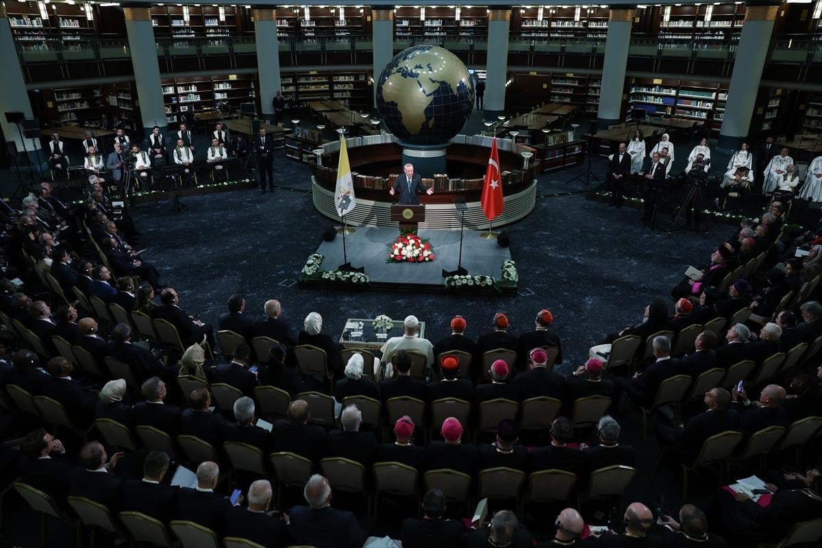 Heyetler arası görüşmeden sonra Cumhurbaşkanı Erdoğan ve Papa 14. Leo, Cumhurbaşkanlığı Millet Kütüphanesinin Cihannüma Salonu'nda gerçekleştirilen Sivil Toplum ve Diplomatik Heyet Toplantısı'na katıldı.