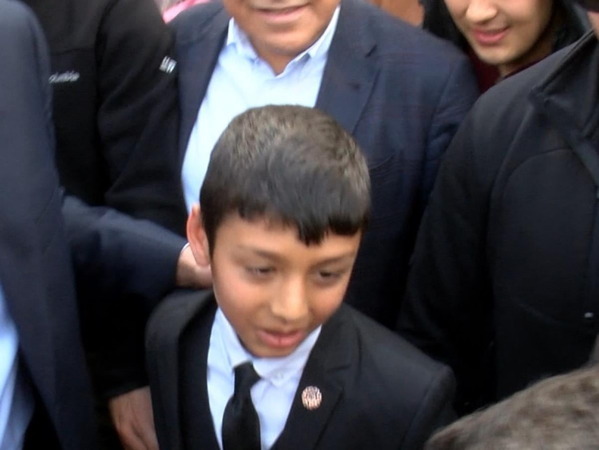 Kendisini bekleyenlerle sohbet eden İnce'nin yanına, seçim otobüsüne yürürken Halil İbrahim Kandemir geldi.