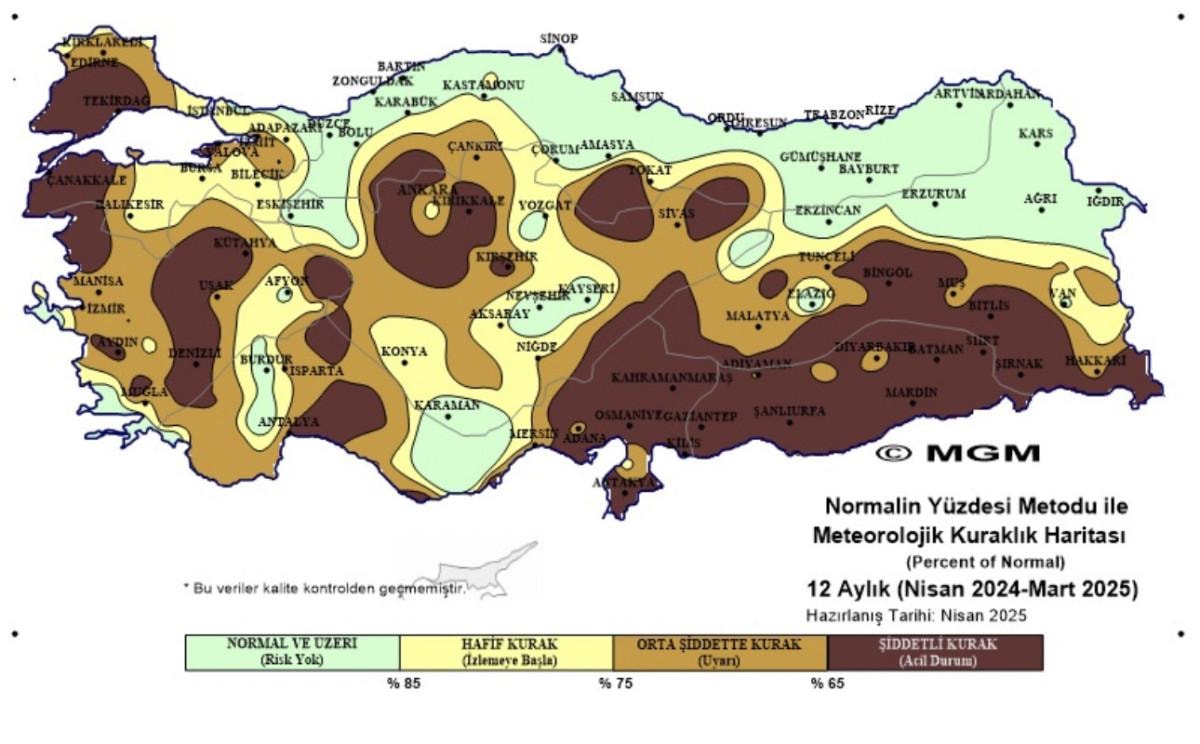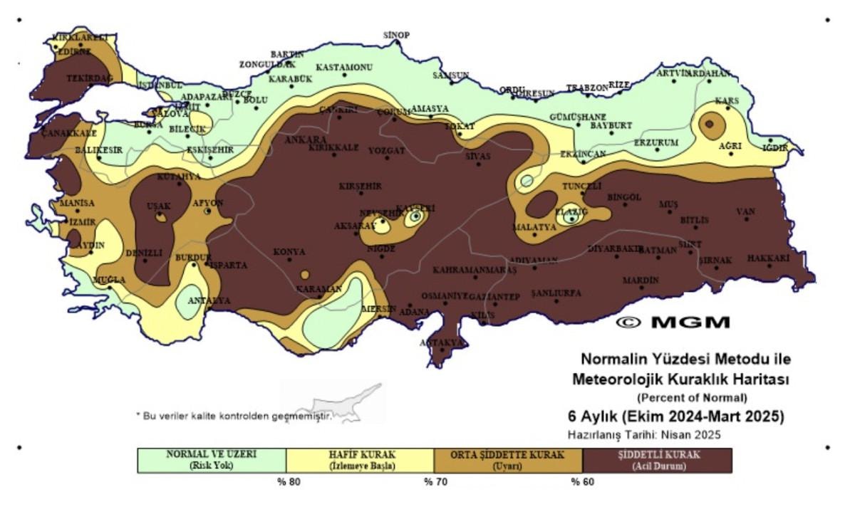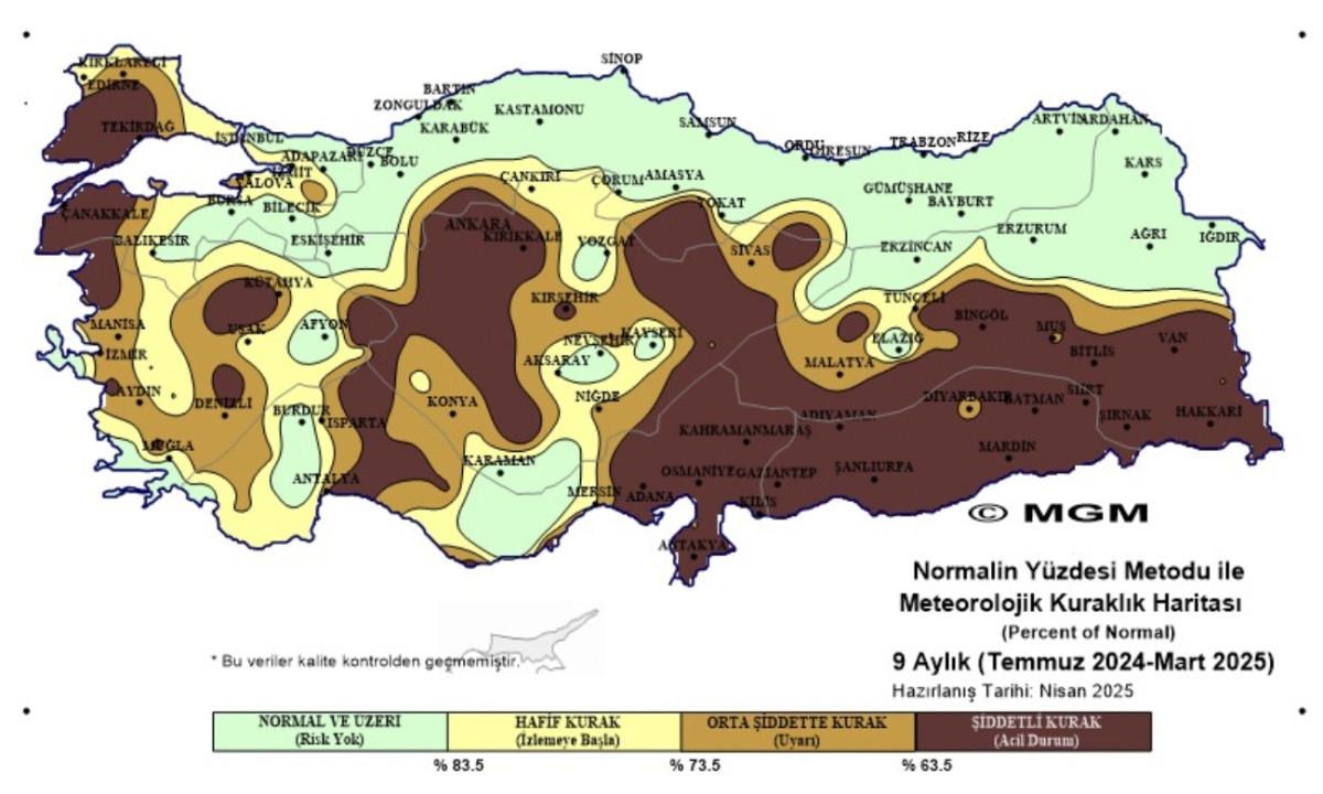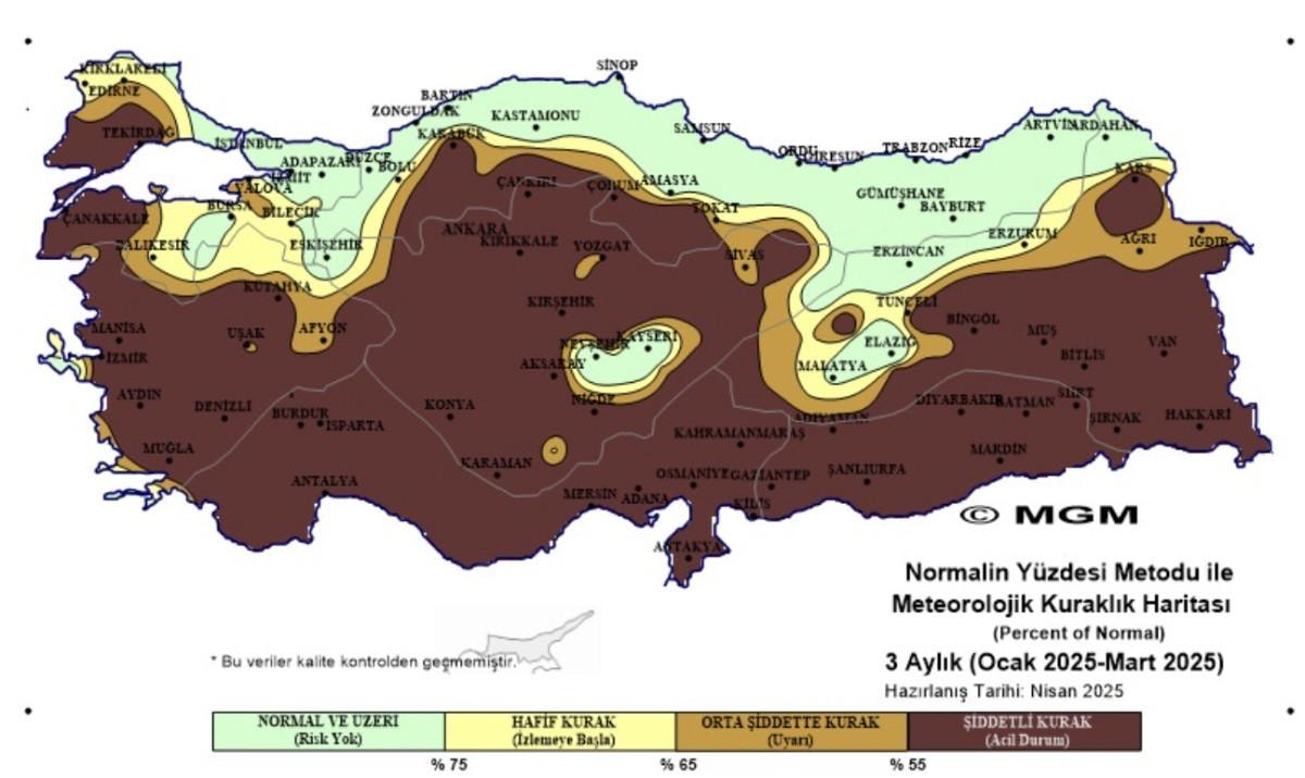 Buna göre Türkiye'nin kuraklık haritası, endişelendirici bir boyuta ulaştı.