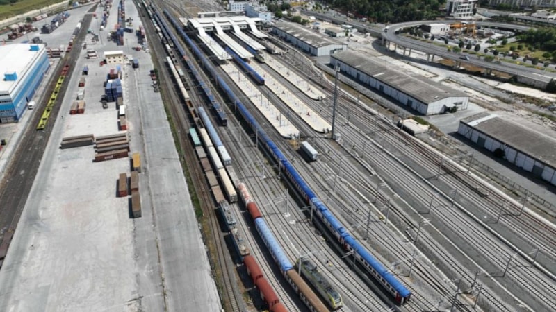 İşçilerin vagonları birleştirme ve bakım onarım işlemleri tüm hızıyla sürüyor. Tren vagonlarını birleştirme işlemleri havadan görüntülendi.