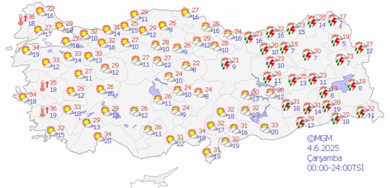 Arife günü Doğu Karadeniz'in iç kesimleri ile Ardahan çevrelerinin, bayramın 1. günü ise Doğu Anadolu'nun doğusunun gök gürültülü sağanak yağışlı olması öngörülüyor.